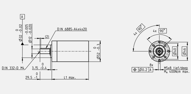 | Máx. carga radial | 900 N, 12 mm desde la brida |